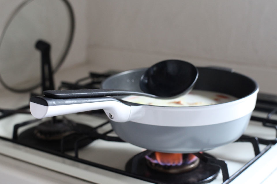 手把處皆有內置高強度耐熱磁鐵,可固定配件,讓廚房檯面保持清潔大空間。鍋蓋手把,易可置放烹煮鍋鏟、湯勺等配件,免去烹煮時,配件不知道放哪的困擾。