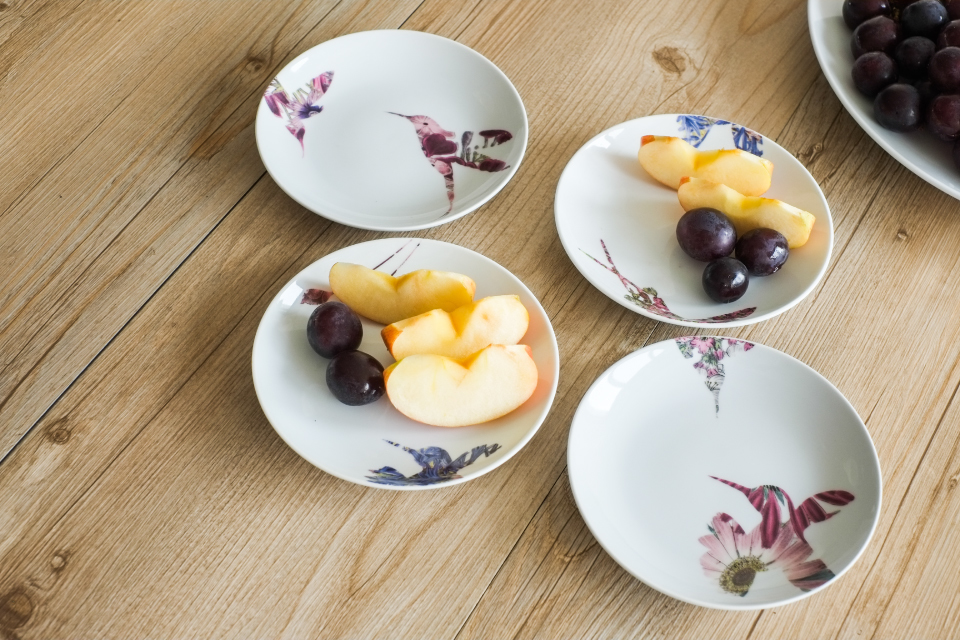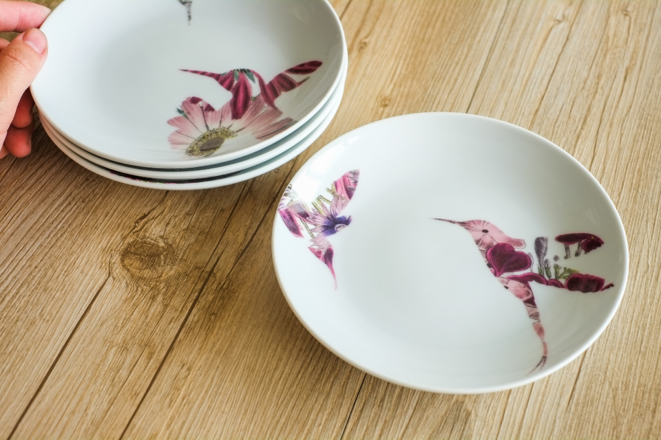 四件一組的Flutter系列前菜盤,設計師以雀鳥剪影輪廓融入花草裏,展示著鳥兒正飛過餐盤,並以花為食,譜繪出一幅鳥語花香的生動畫卷,用來盛裝精緻的小菜,為生活注入一絲藝術的美感。祝福收到禮物的人無論今年有什麼困難,都可以在春暖花開時,充滿生機與希望!