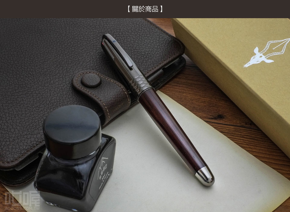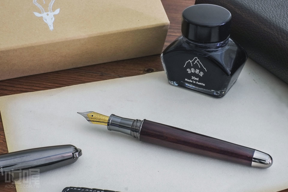老山羊這款鋼筆採用小葉紫檀搭配白鋼材質,木質筆身自然溫潤,書寫時感受滑順紮實的手感。