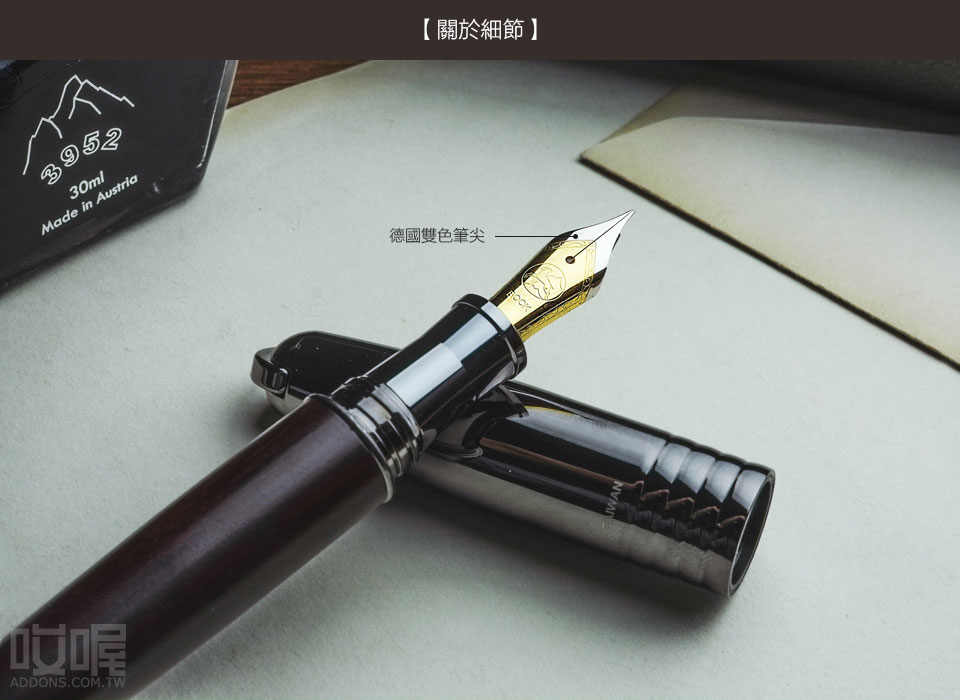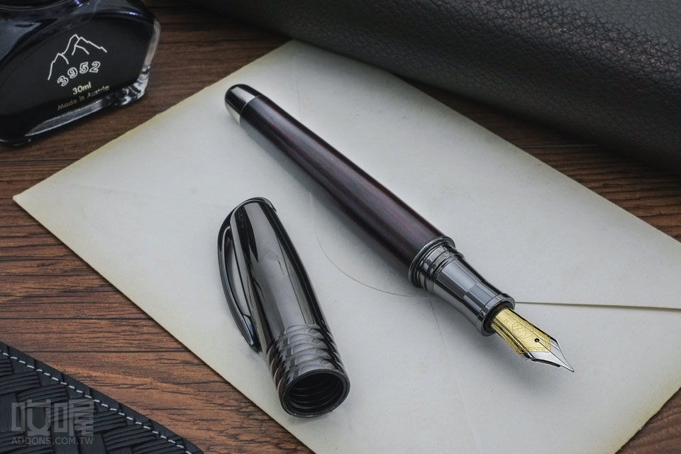 筆蓋有雷射雕刻3952玉山符號,採用德國原裝進口的雙色筆尖,