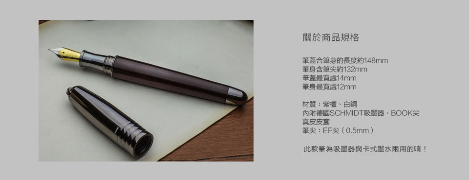 出水滑順,好寫不刮紙,並附有德國SCHMIDT的吸墨器。