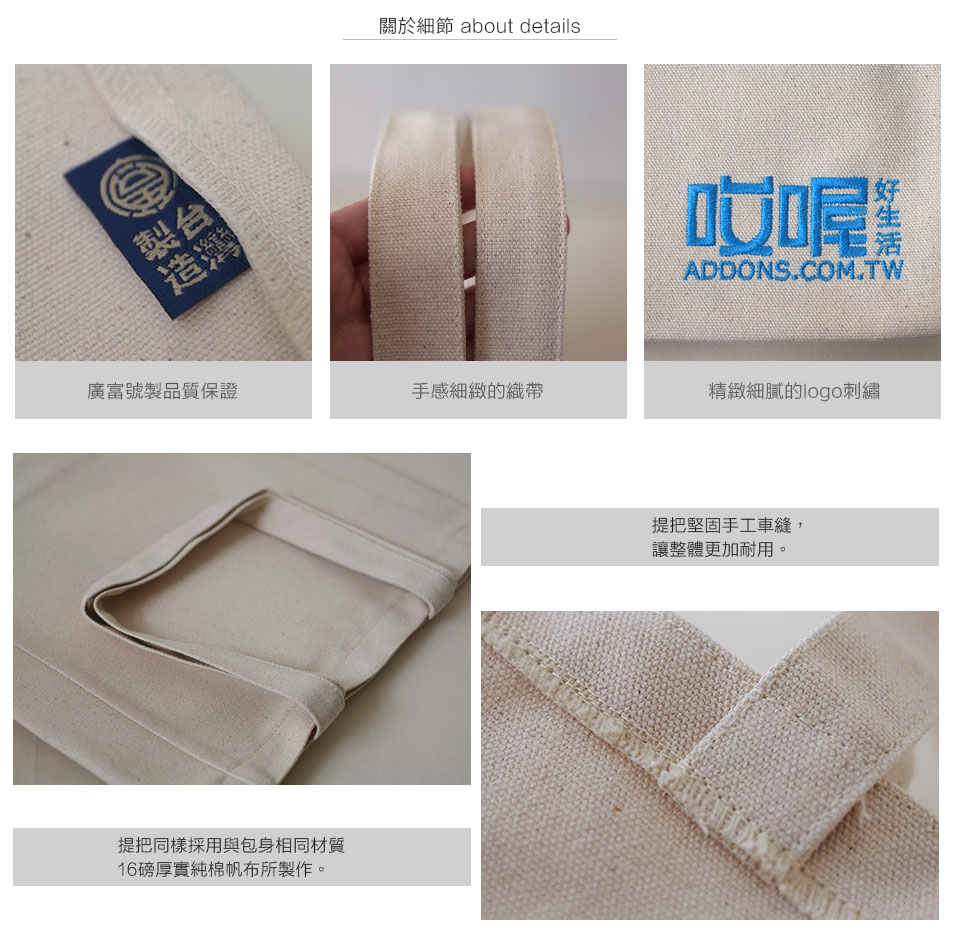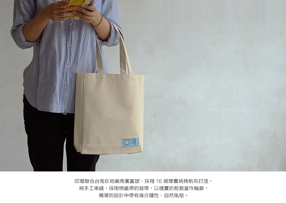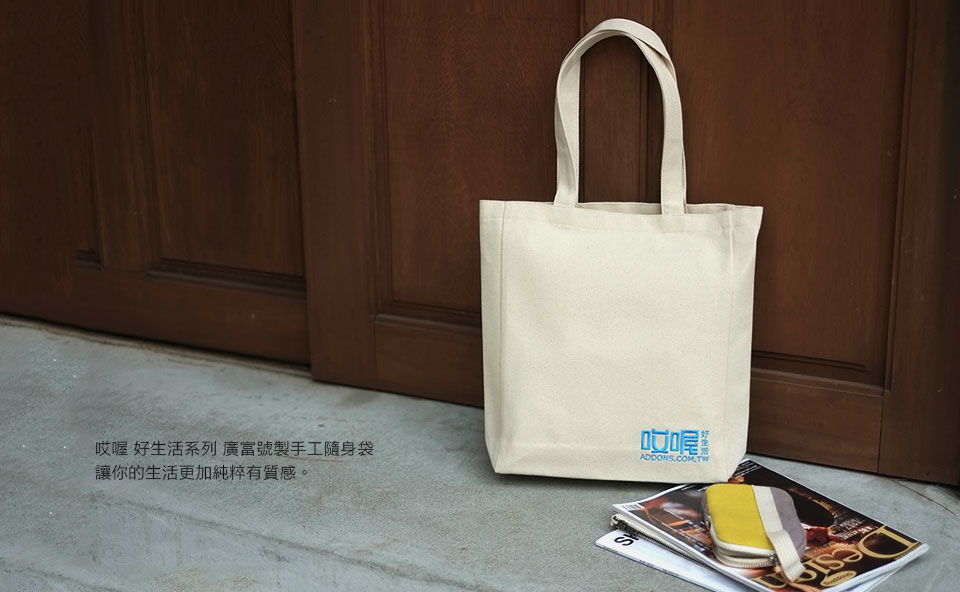 哎喔聯合台南在地廠商廣富號,採用 16 磅帆布打造的隨身包,
