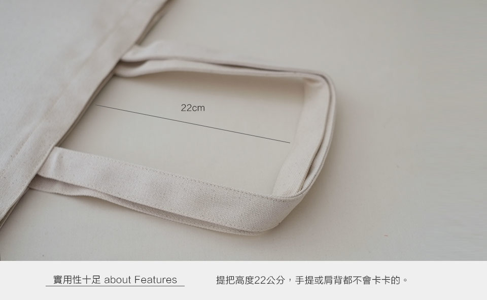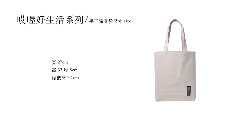 純手工車縫,採用棉織帶的背帶,以樸實的剪裁當作輪廓,