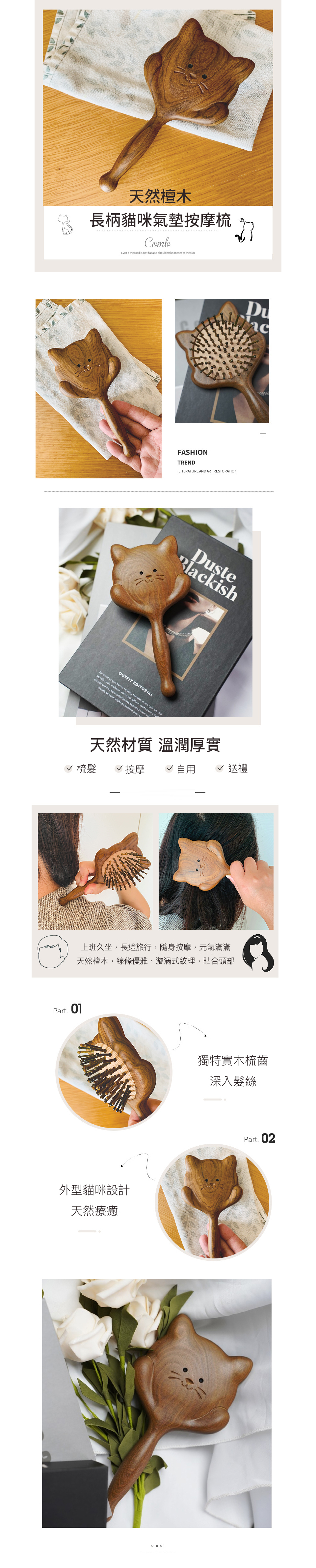 〔哎喔嚴選〕貓咪造型 天然檀木 氣墊按摩梳