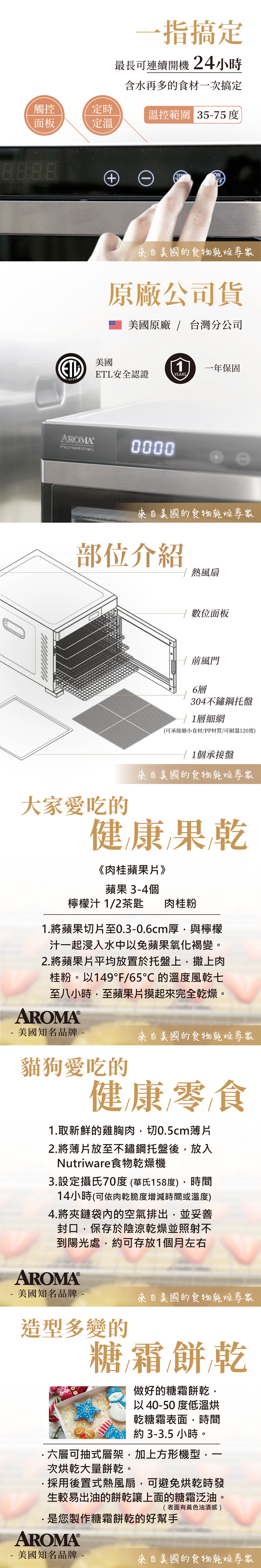 美國 AROMA 六層全金屬乾果機 (AFD-965SDU),