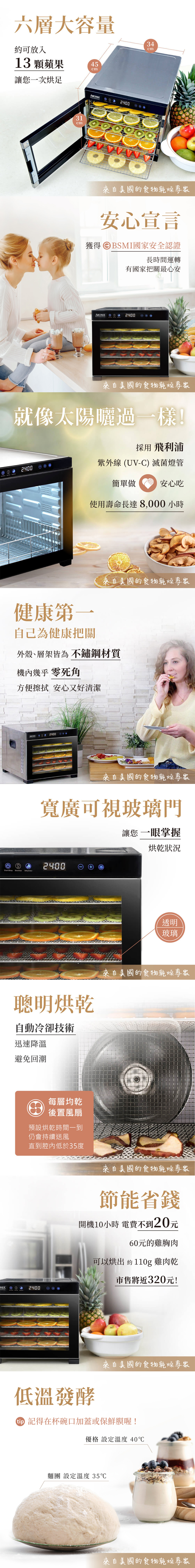 【強勢升級款】美國 AROMA 紫外線全金屬六層乾果機 食物乾燥機 果乾機 烘乾機 AFD-965SDU (贈彩色食譜)