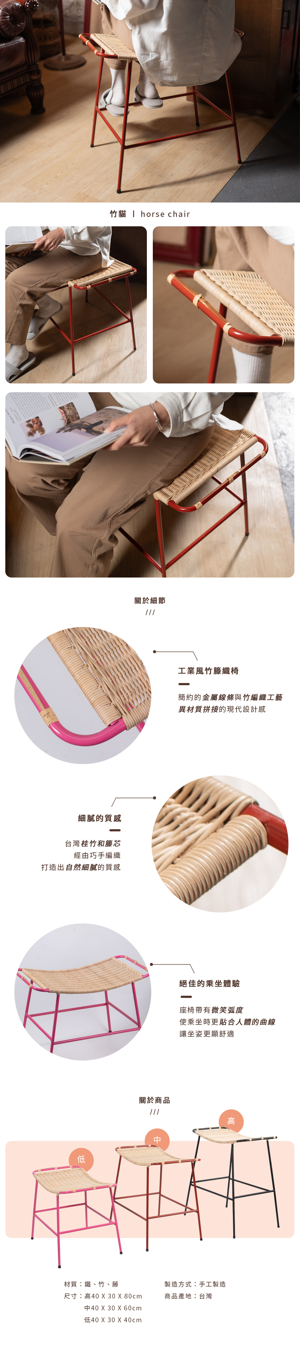 【台灣綠工藝】竹貓 工業風竹籐織椅 horse chair