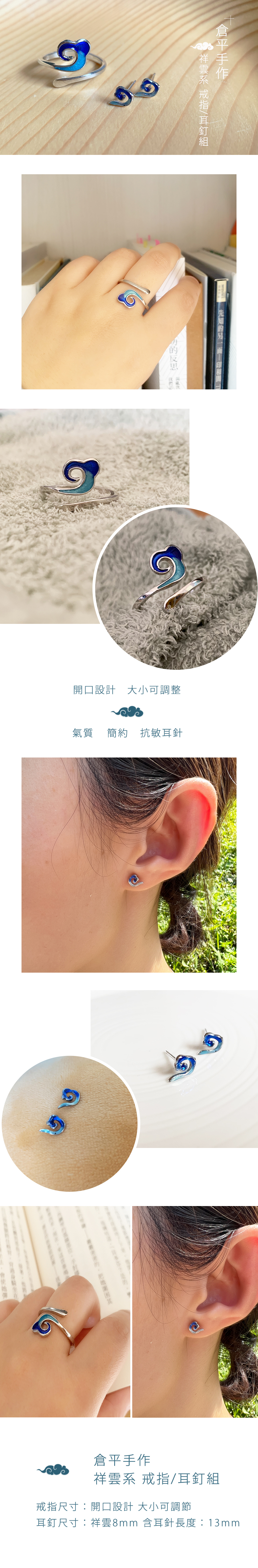 倉平手作 祥雲系列 手工流釉 合金戒指/耳釘組