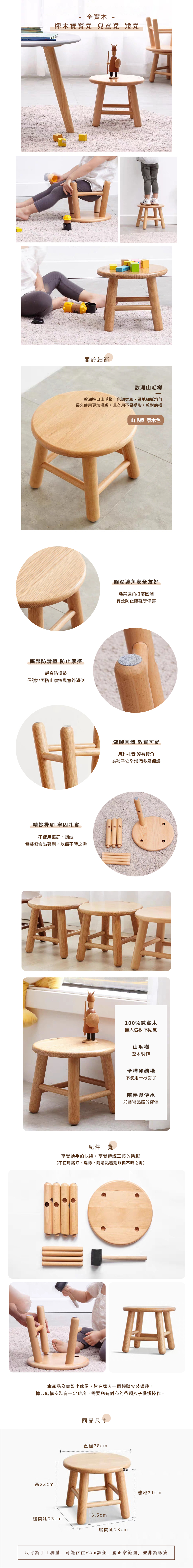 〔哎喔嚴選〕榫卯工藝 全實木 櫸木寶寶凳/兒童凳/矮凳 (DIY商品)