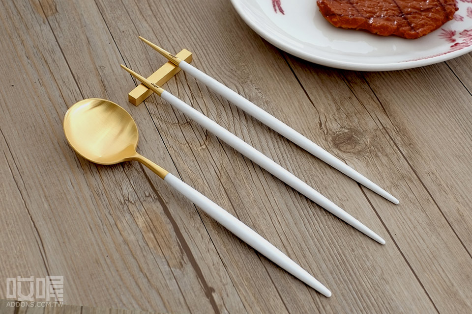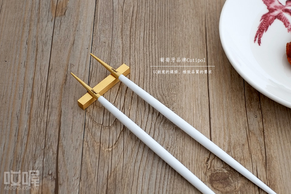 此款筷子組還附有黃銅筷架,讓使用起來更加順手安心。