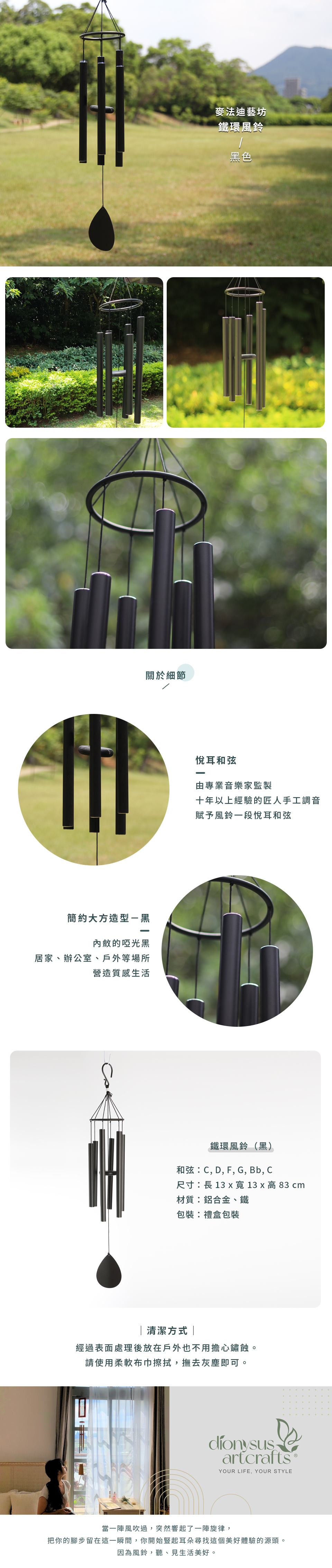 麥法迪藝坊 鐵環風鈴 32"(黑色)