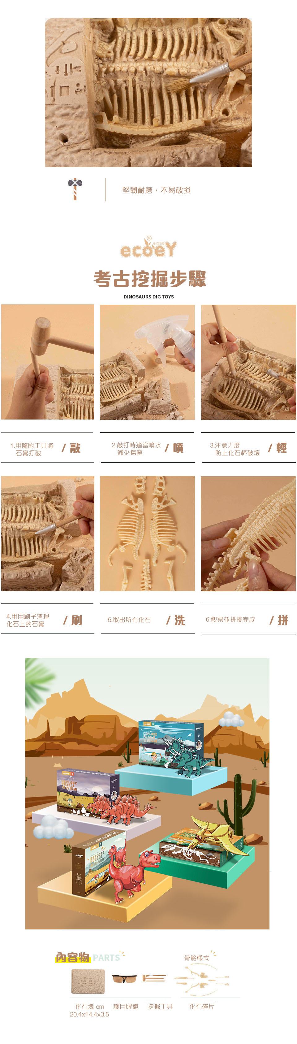 ECOEY® 自然教育教材玩具 恐龍化石考古挖掘組(附工具組 & 護目鏡)- 四種恐龍造型可選