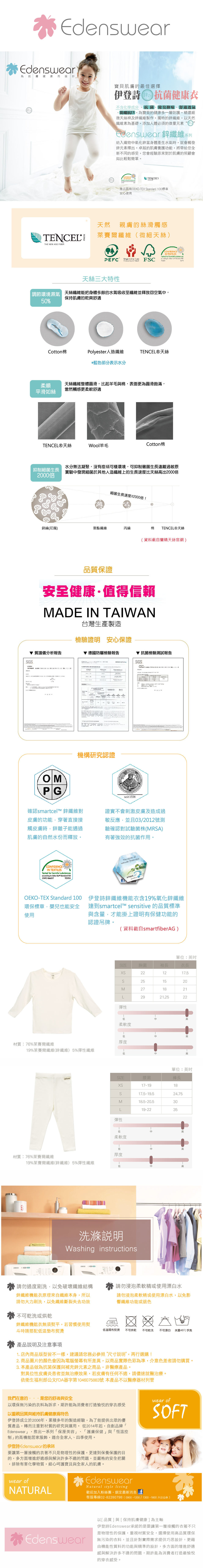 Edenswear伊登詩 鋅纖維系列 兒童長袖/長褲/套組