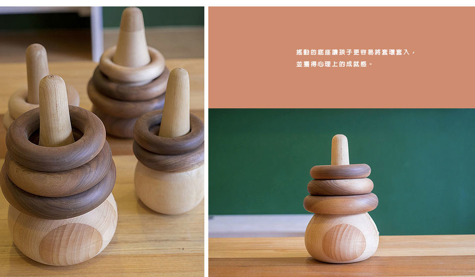 搖動的底座讓孩子更容易將套環套入,並獲得心理上的成就感。