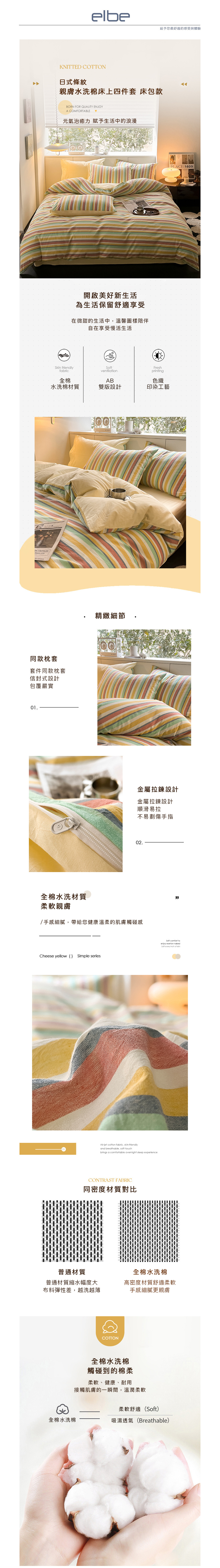 elbe 日式簡約素色質感 100%天然親膚水洗棉 被套床包組(四件式)