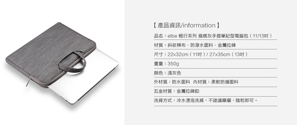 elbe 輕行系列 雅痞灰手提筆記型電腦包(11/13吋)