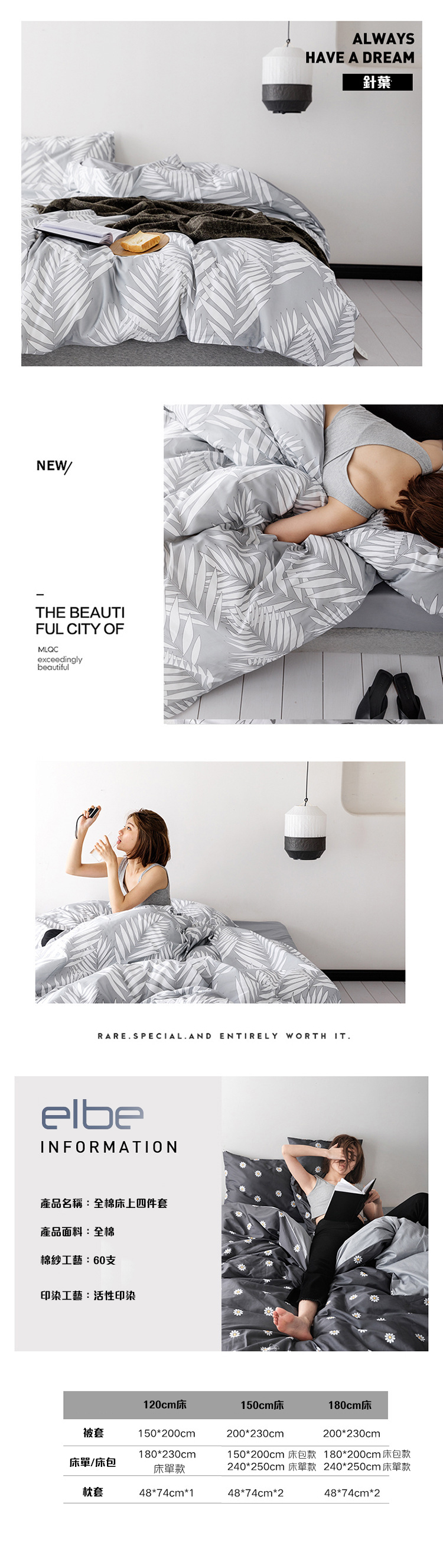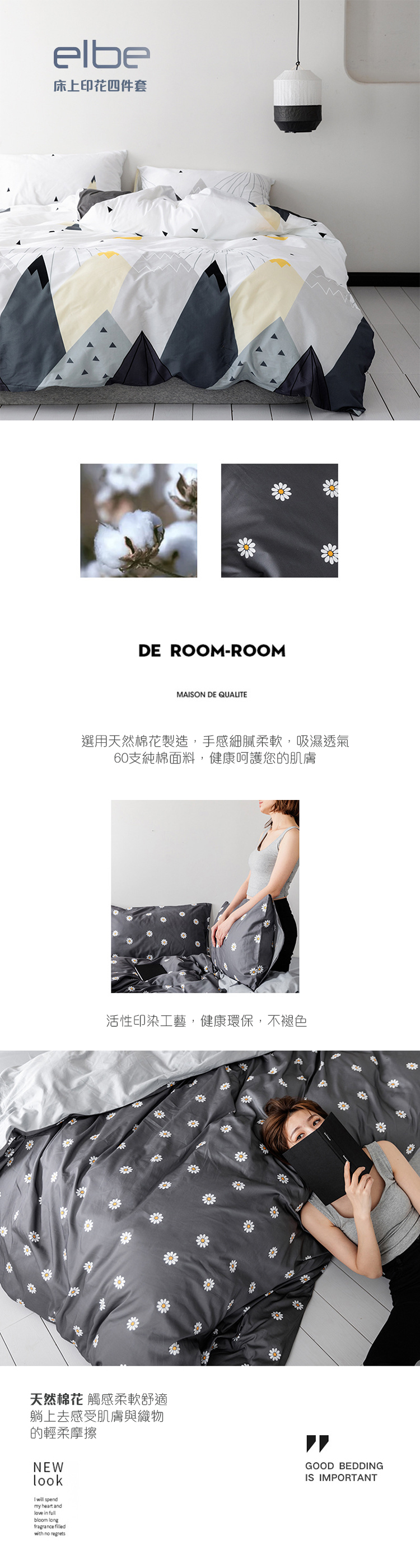 [出清優惠] elbe 北歐風格 全棉被套床包組 (四件式)(多花色 / 三種規格)