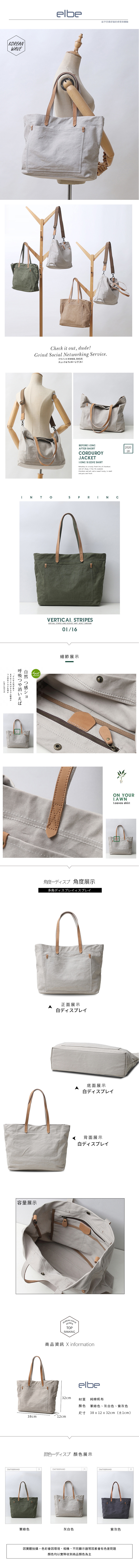 elbe KoreanWave 文青風格 帆布托特包/郵差包/手提包 (附背帶. 二色可選)