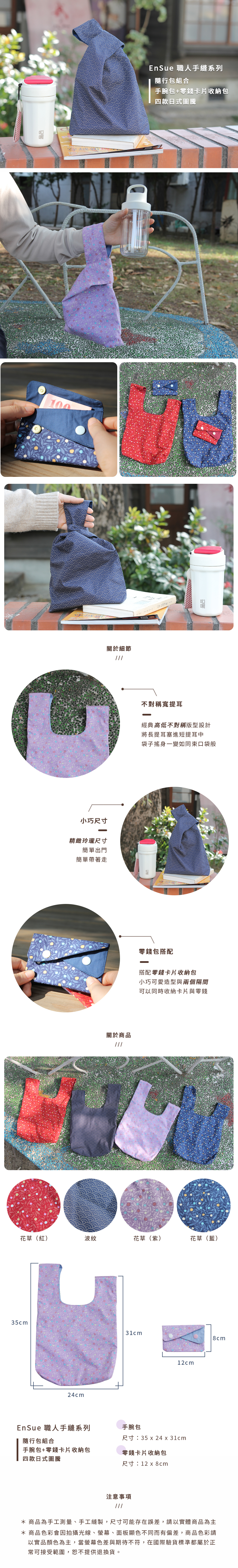 EnSue 職人手縫系列 隨行包組合 手腕包+零錢卡片收納包(四款日式圖騰)