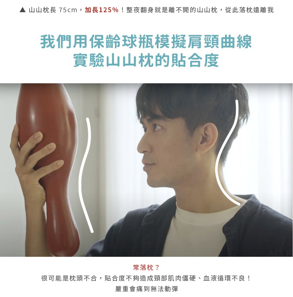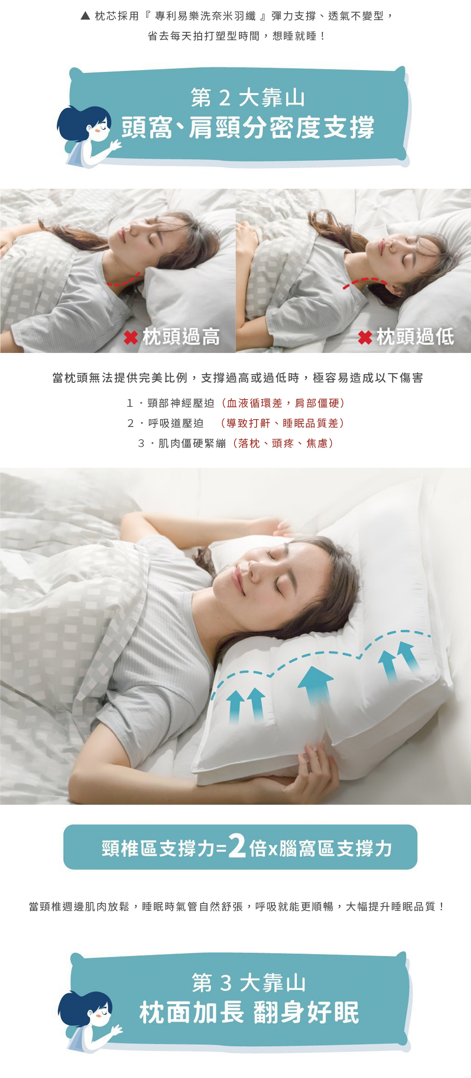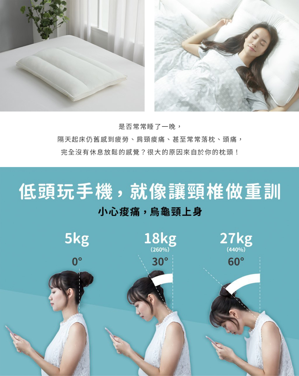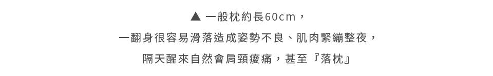 加大枕長,加長125%,整夜翻身不離開枕頭,減少落枕機率,