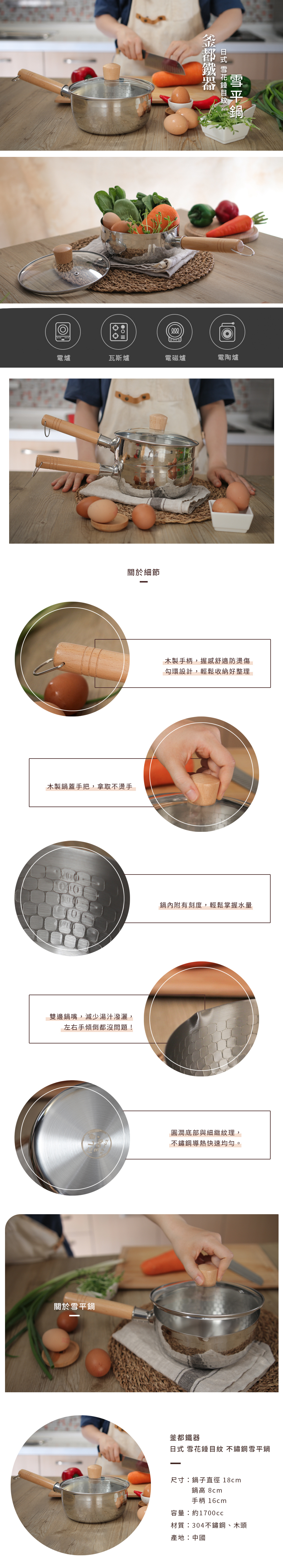 尺寸:鍋子直徑 18cm/手柄 16cm/鍋高 8cm