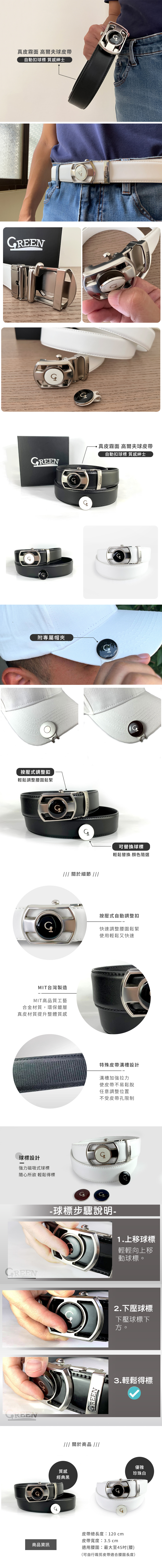 Green 真皮霧面男仕高爾夫皮帶 高爾夫球標自動滑扣皮帶(兩色可選)加贈帽夾
