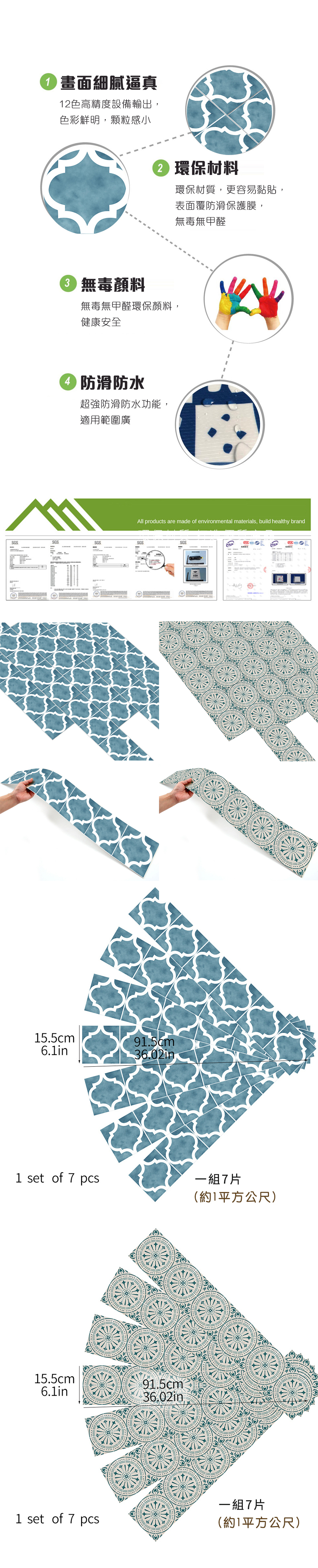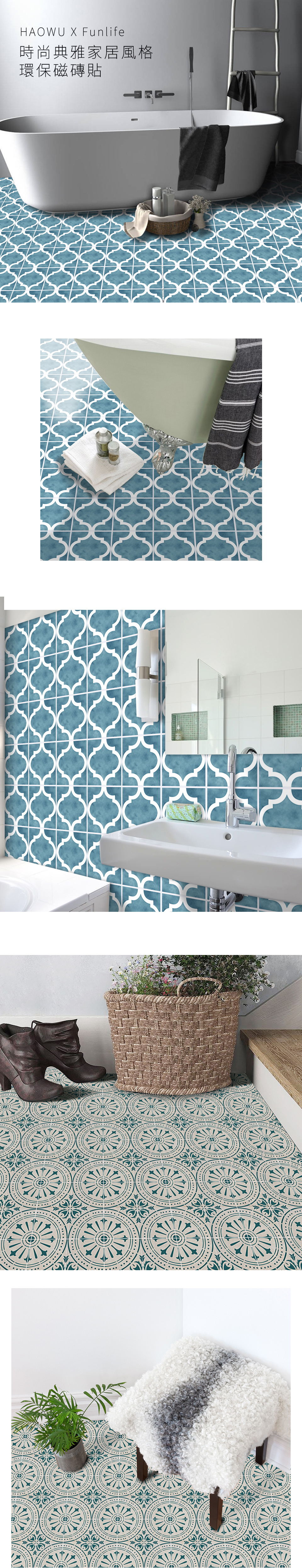 HAOWU X Funlife 時尚典雅家居風格 環保材質 方型磁磚貼/壁貼 (兩種花色/一組七張)