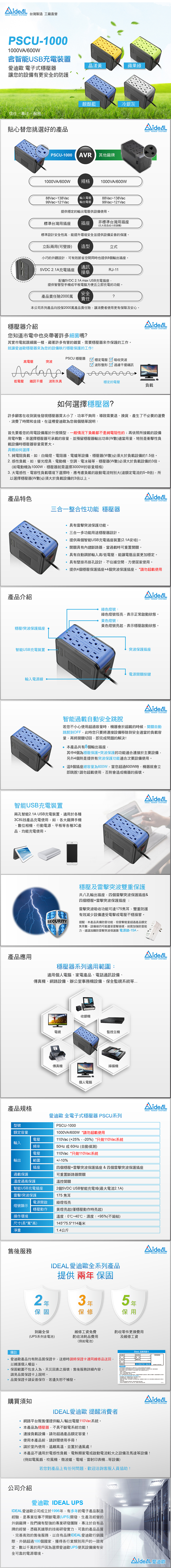 愛迪歐IDEAL 1000VA 穩壓器 含USB充電埠 PSCU-1000