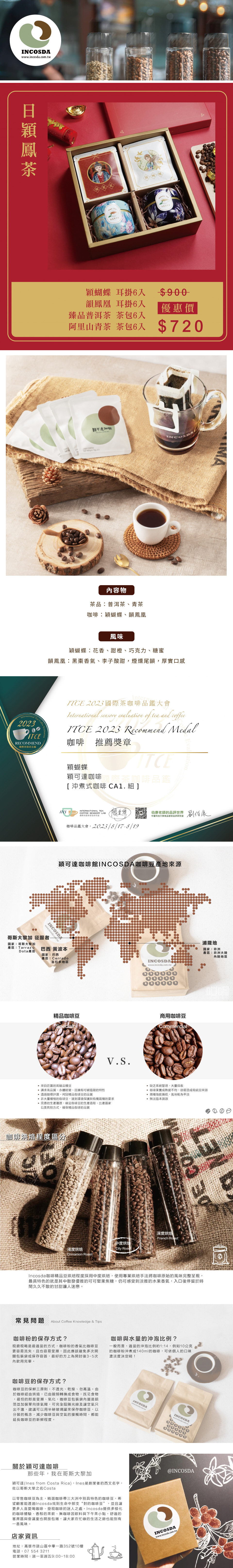穎可達咖啡館 日穎鳳茶 精品咖啡與茶禮盒 (耳掛咖啡+普洱茶包 + 阿里山清茶包)