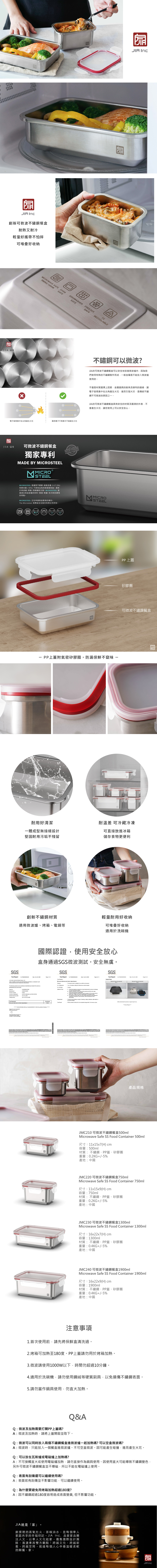 JIA可微波不鏽鋼保鮮盒以獨家專利Made By Microsteel材質製作而成,