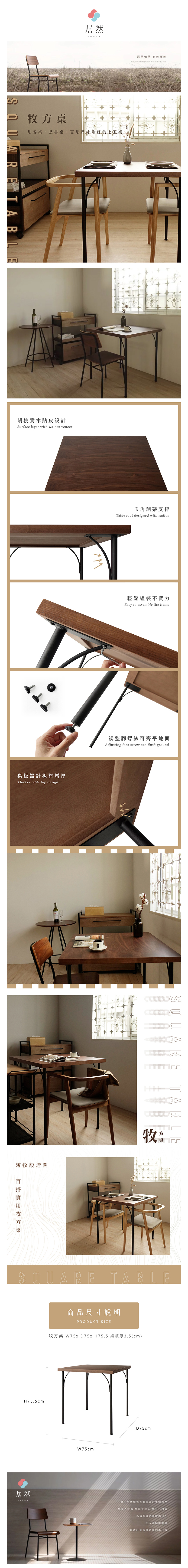 更是尺寸剛好的七五方桌,​
