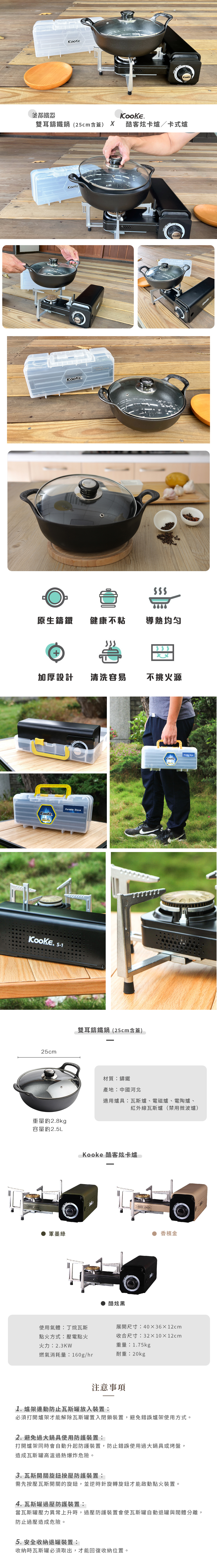 KOOKE 卡式爐 + 釜都鐵器雙耳鑄鐵鍋 25cm