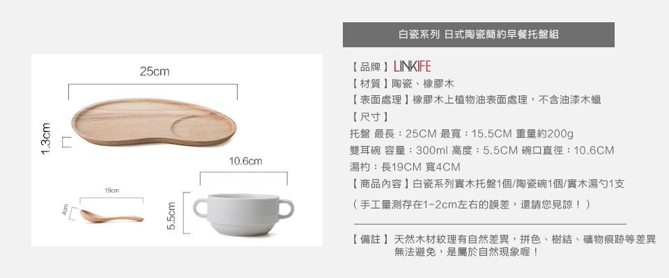 LINKIFE 早餐托盤組以一拖盤一瓷碗加上湯杓的完整組合,