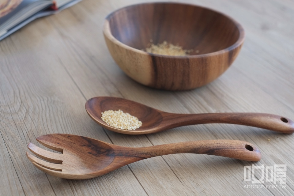 組合包含一勺一叉子組合,各有所其專用之處,拿來舀湯品或者裝盛沙拉都非常實用,