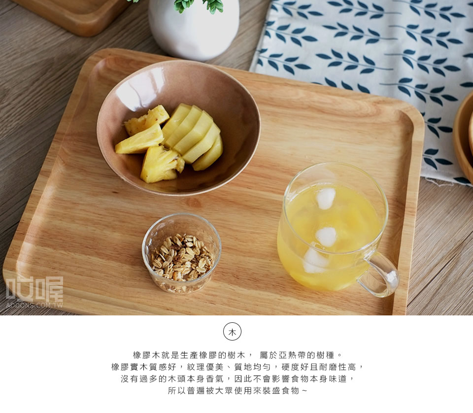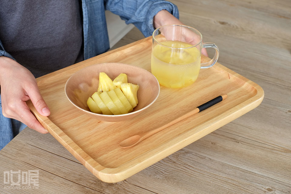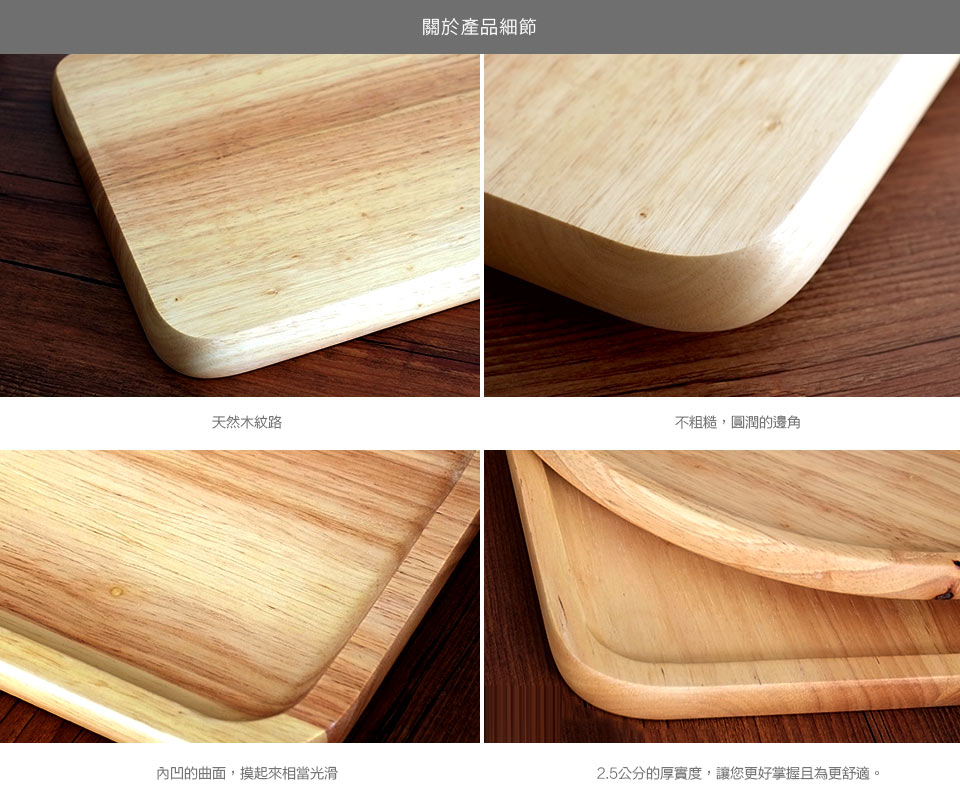 以天然厚實的橡膠木製成光滑細緻表面的托盤,