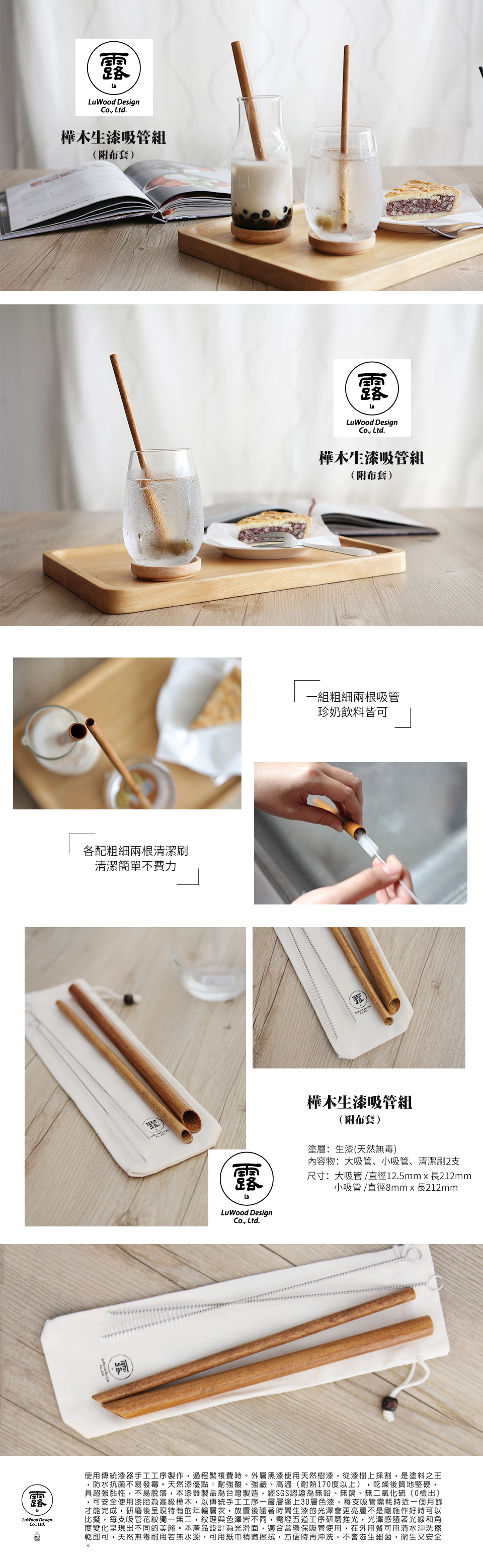 露木文創 Luwood 樺木生漆環保吸管組(附布套&清洗刷)一組/二組