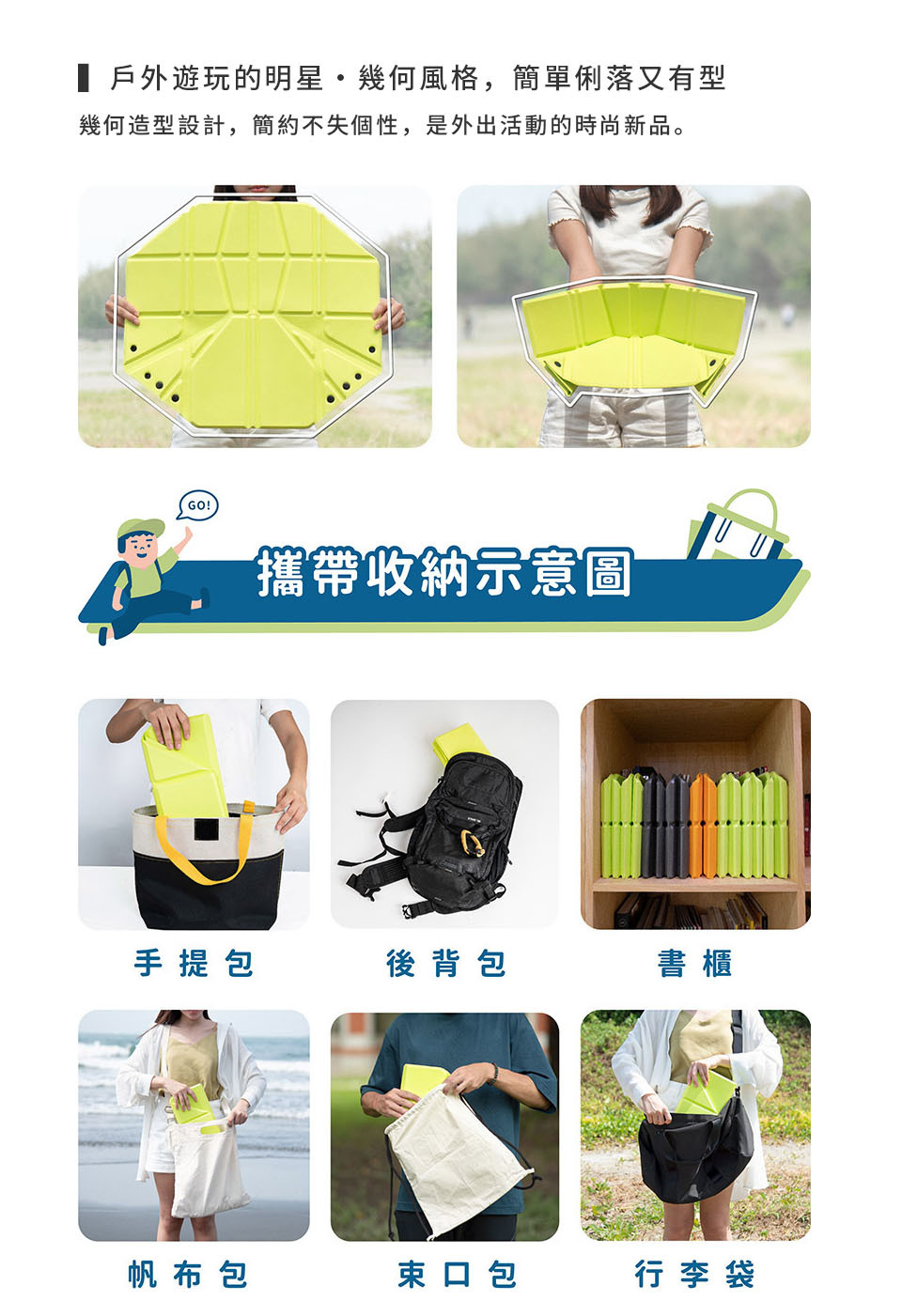 簡單摺、隨處坐,多種使用模式,隔絕濕氣、熱氣與髒污,