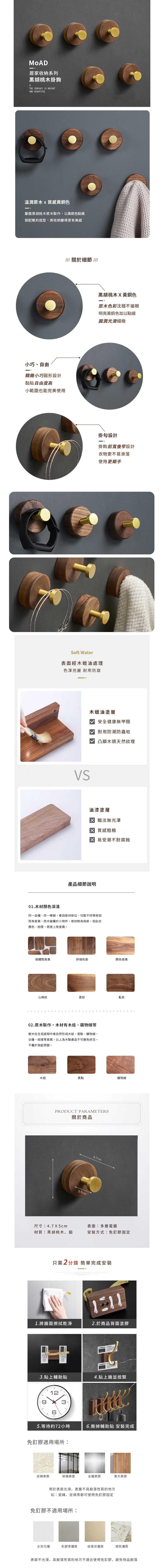 MoAD 居家收納系列 黑胡桃木黃銅色圓形掛鉤/壁掛/衣帽掛