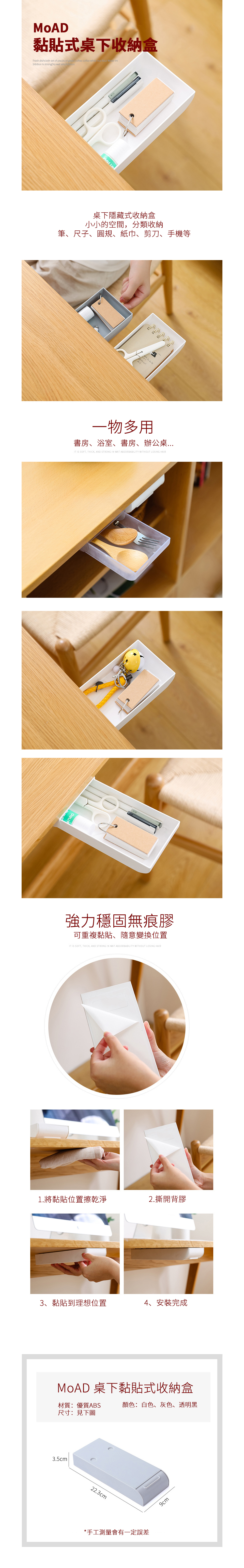 MoAD 黏貼式桌下收納盒,節省桌面空間的好幫手!