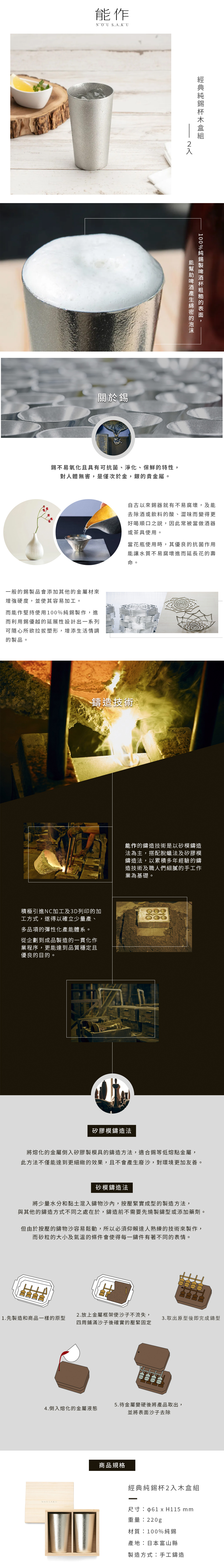 能作NOUSAKU 經典純錫杯木盒組 純錫酒杯 啤酒杯 (一組兩入)