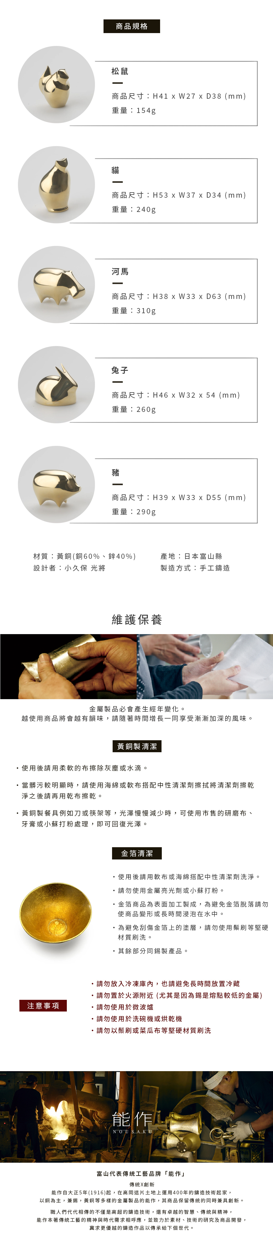 能作NOUSAKU 黃銅 銅心未泯動物擺飾(5款)