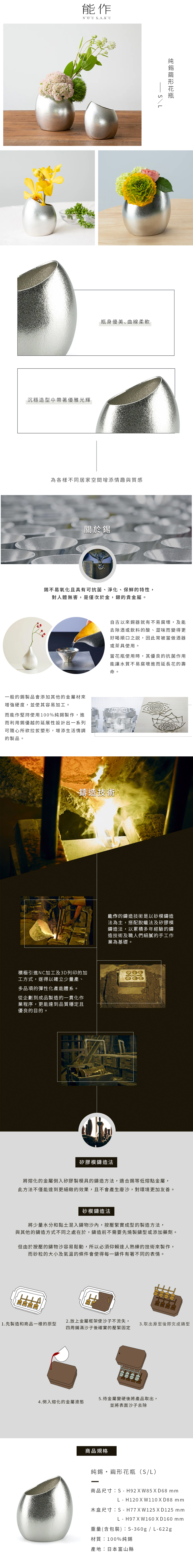 能作NOUSAKU 純錫 繭形花瓶/花器(S / L)