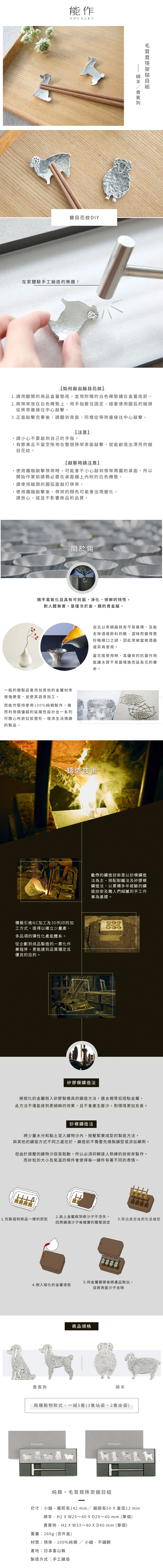 毛茸茸筷架鎚目組藉由鎚目紋理表現綿羊、貴賓狗蓬鬆的絨毛,