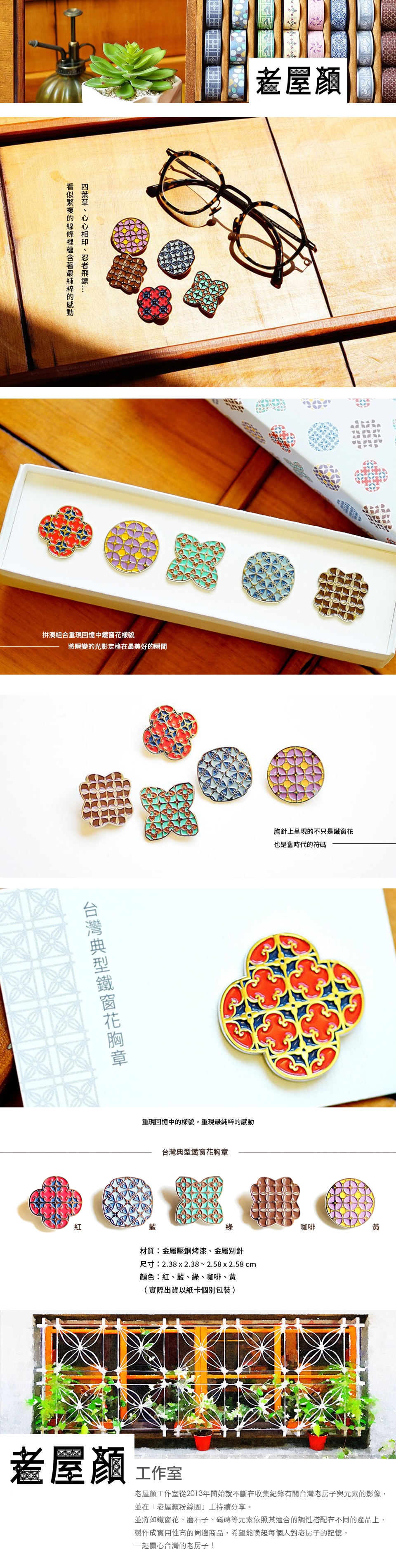 老屋顏 台灣典型鐵窗花胸章 (一組五入)