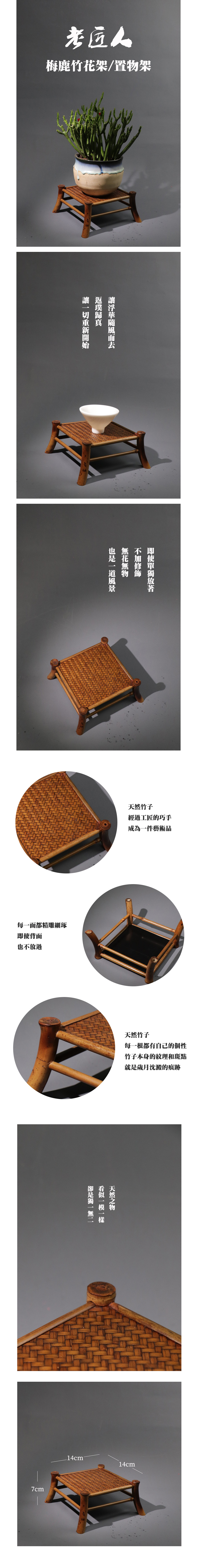 老匠人 職人手工竹編 梅鹿竹 花架/置物架 (14X14cm)