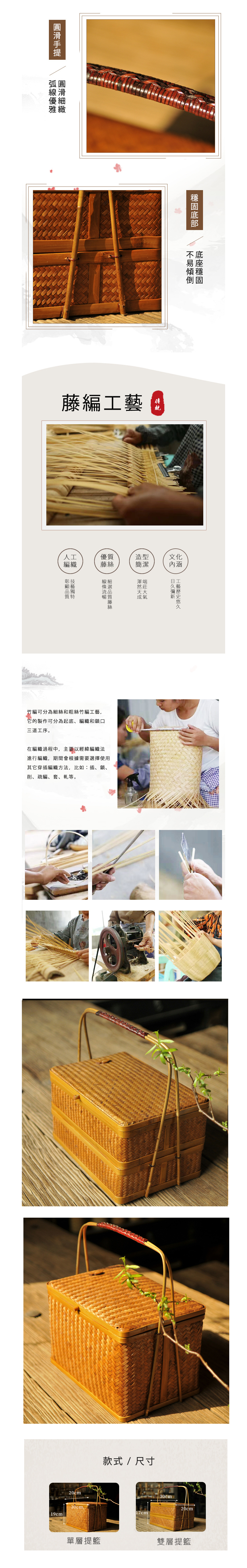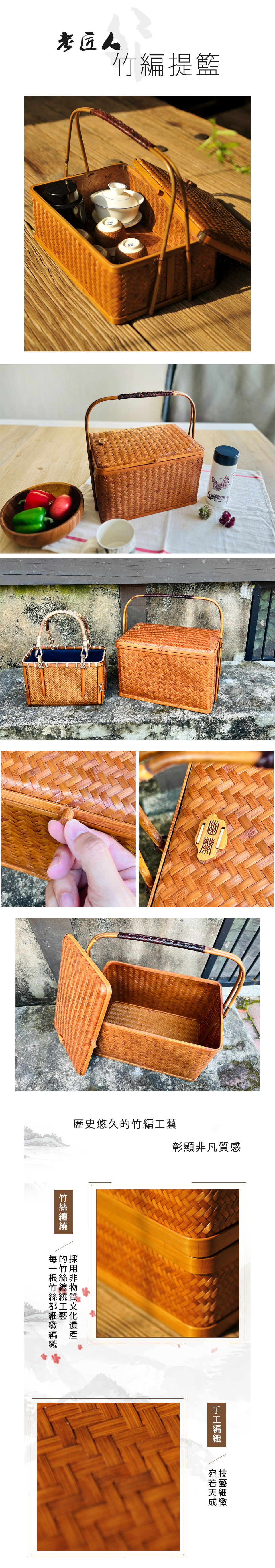 老匠人 手工竹編提籃 野餐籃 茶具收納籃 (單層/雙層 可選)