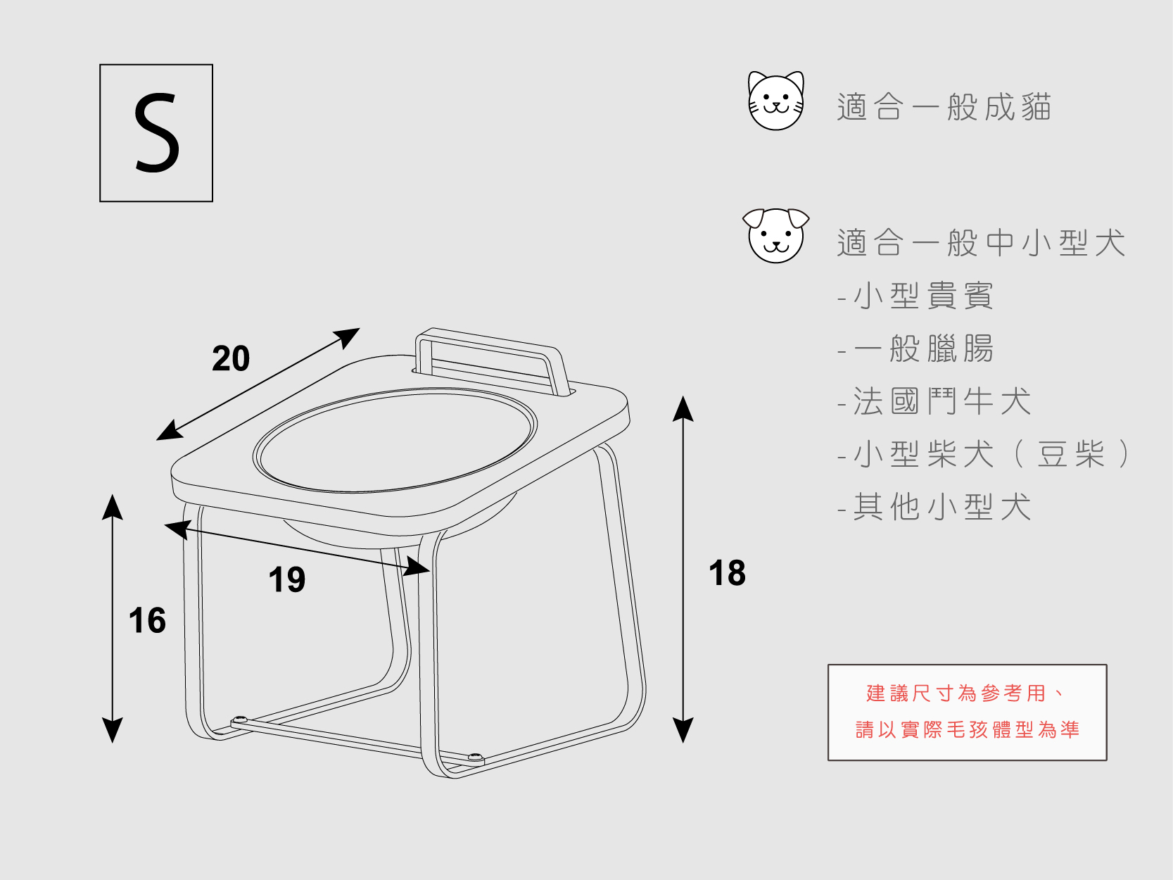 此款為中小型尺寸,適合中小體型的毛小孩來使用喔!(中小型犬/貓)