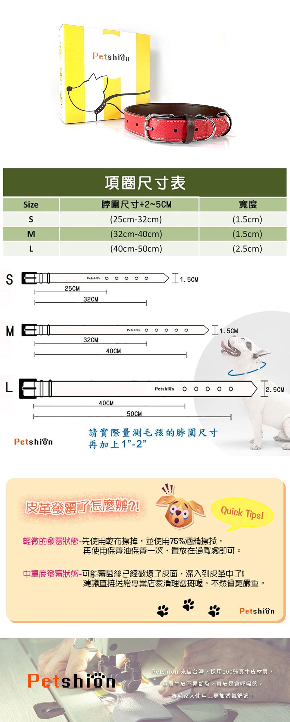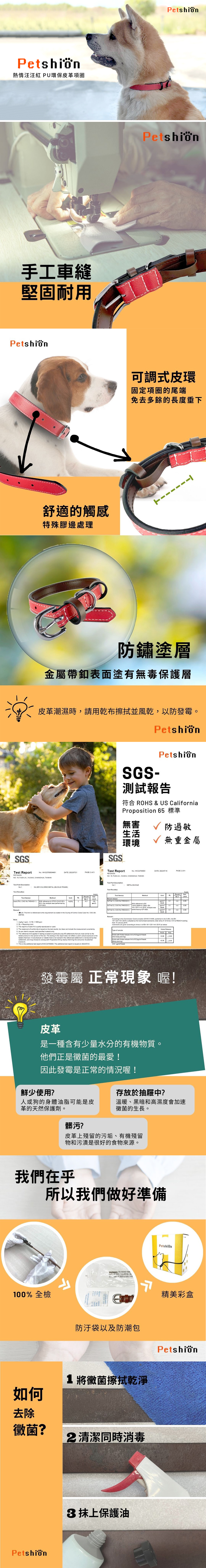 Petshion 台灣製造 熱情汪汪紅 時尚PU環保皮革項圈(多尺寸)