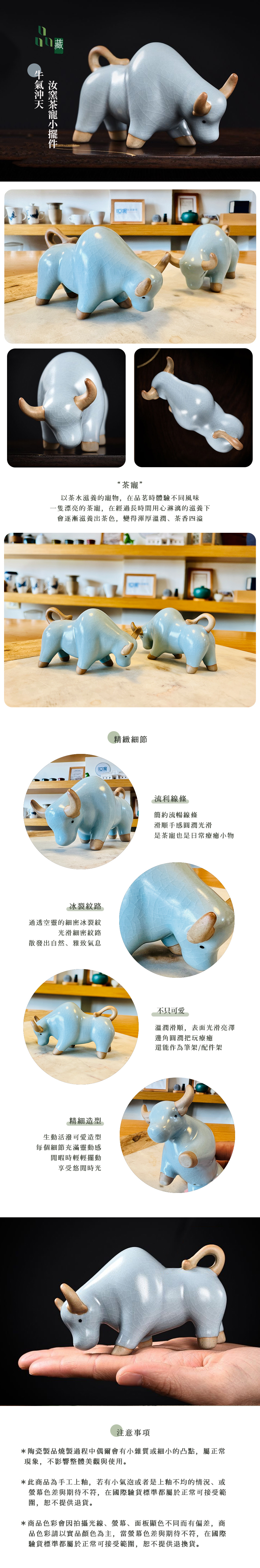 品藏 天青色汝窯茶寵小擺飾 牛氣沖天