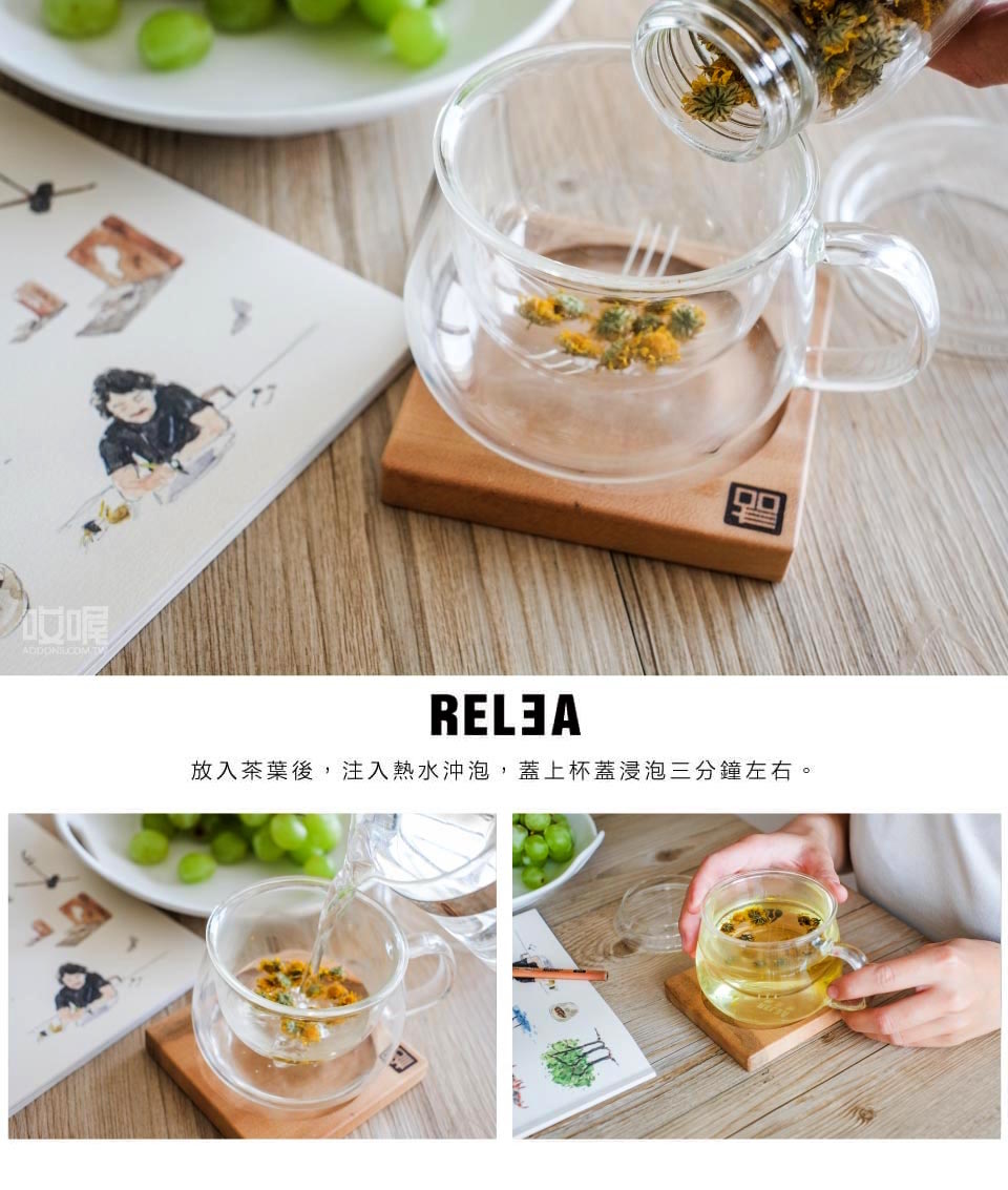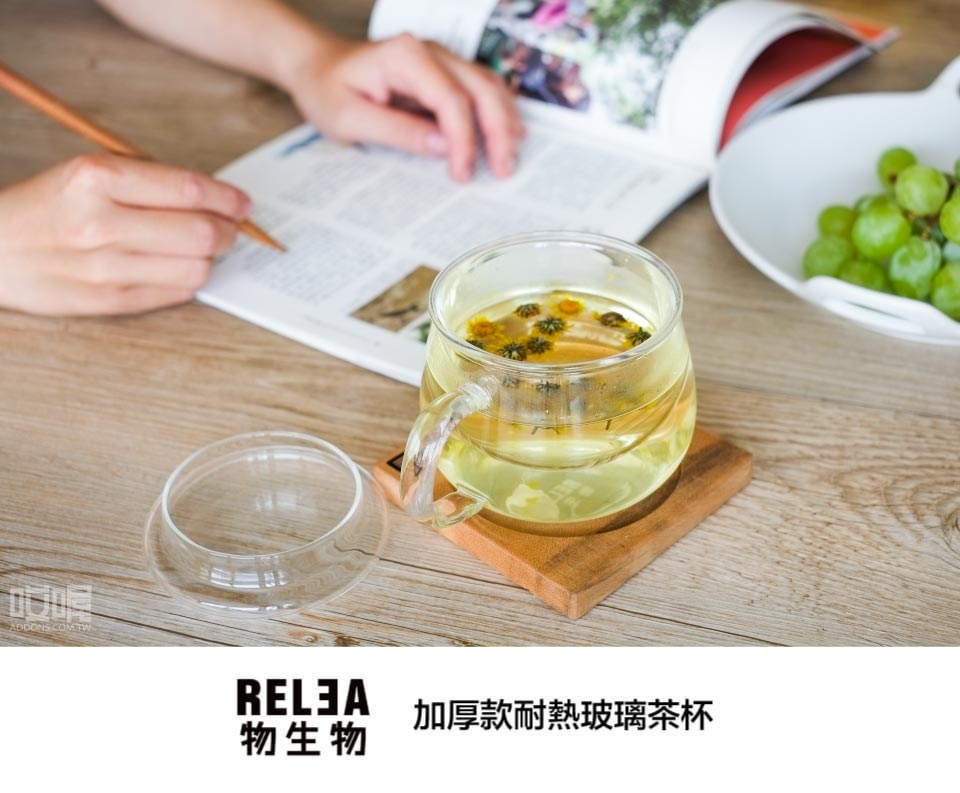 RELEA 加厚款耐熱玻璃茶杯(含杯蓋/內膽)